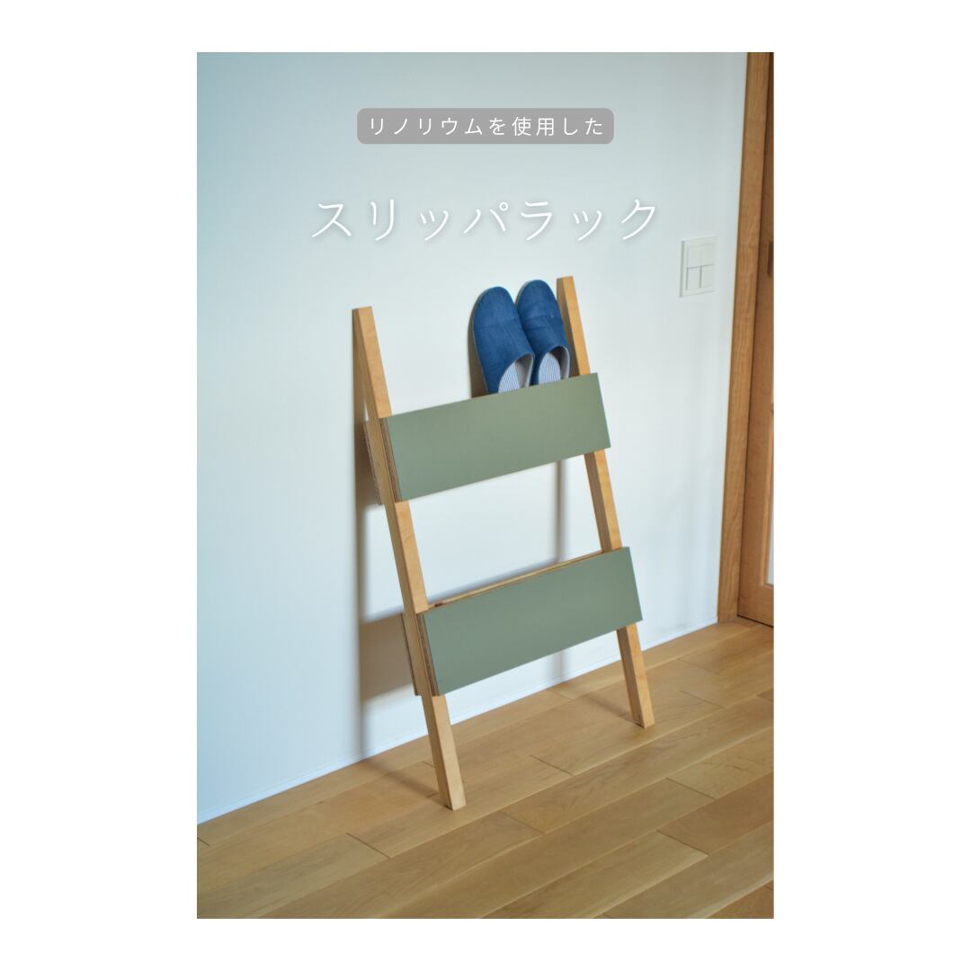 リノリウムを使用したハンドメイドのスリッパラックです。