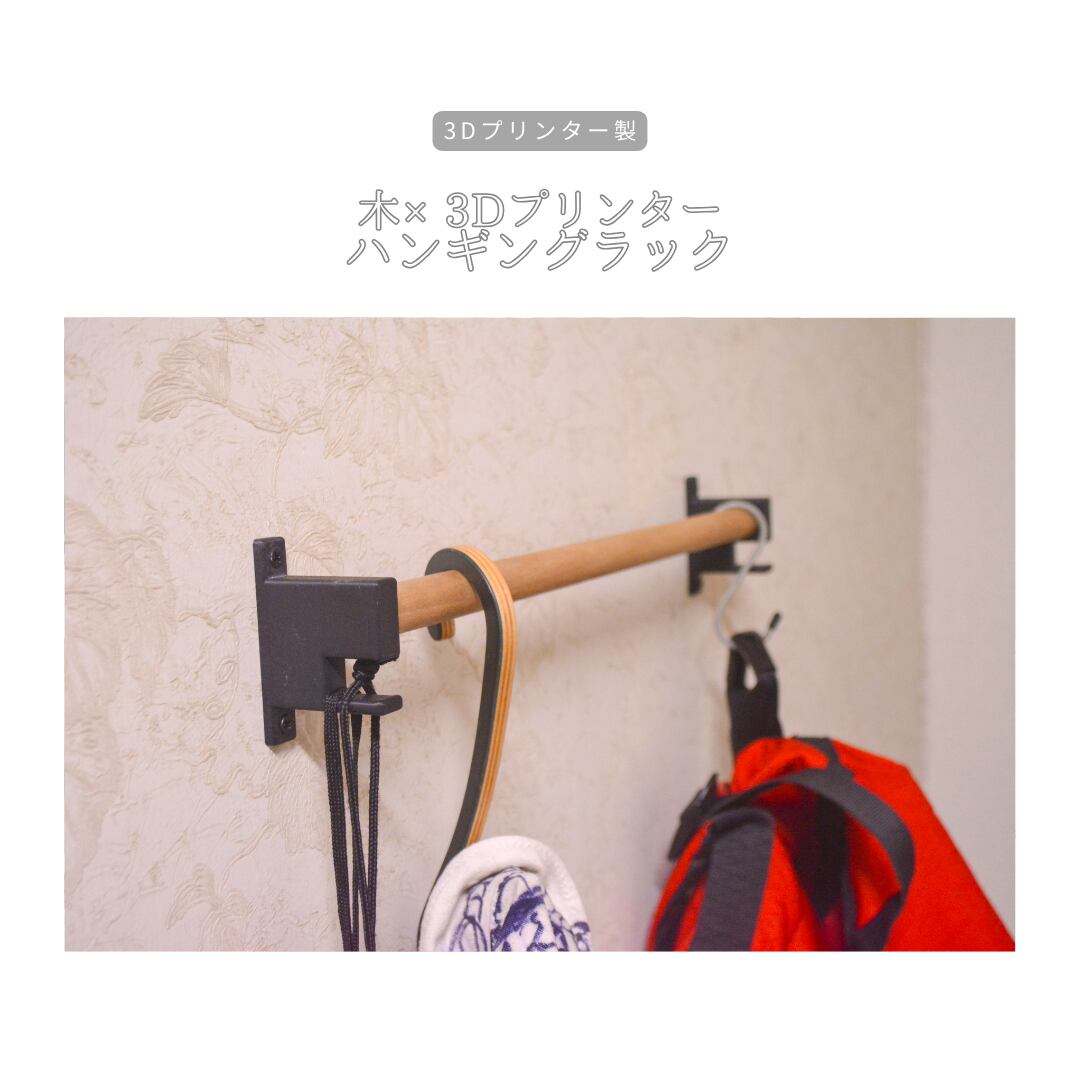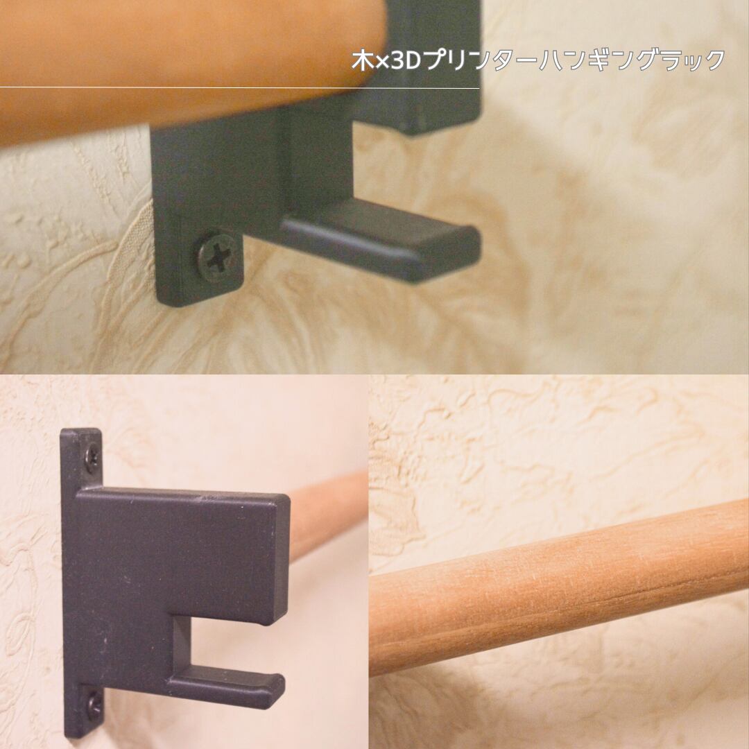 丸棒の天然木に、耐久性と精度を兼ね備えた3Dプリンター製フックを組み合わせることで、日常使いにちょうどいい“掛ける収納”を実現。