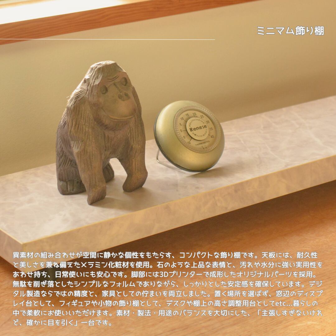 置く場所を選ばず、窓辺のディスプレイ台として、フィギュアや小物の飾り棚として、デスクや棚上の高さ調整用台としてetc…暮らしの中で柔軟にお使いいただけます。
