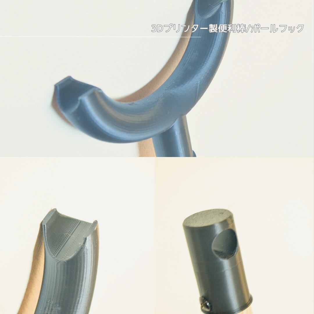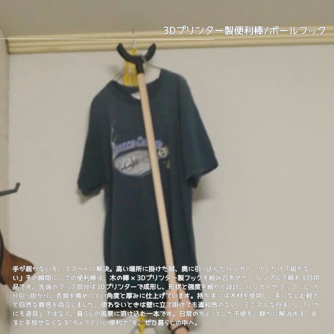 この便利棒は、木の棒 × 3Dプリンター製フックを組み合わせた、シンプルで頼れる日用品です。