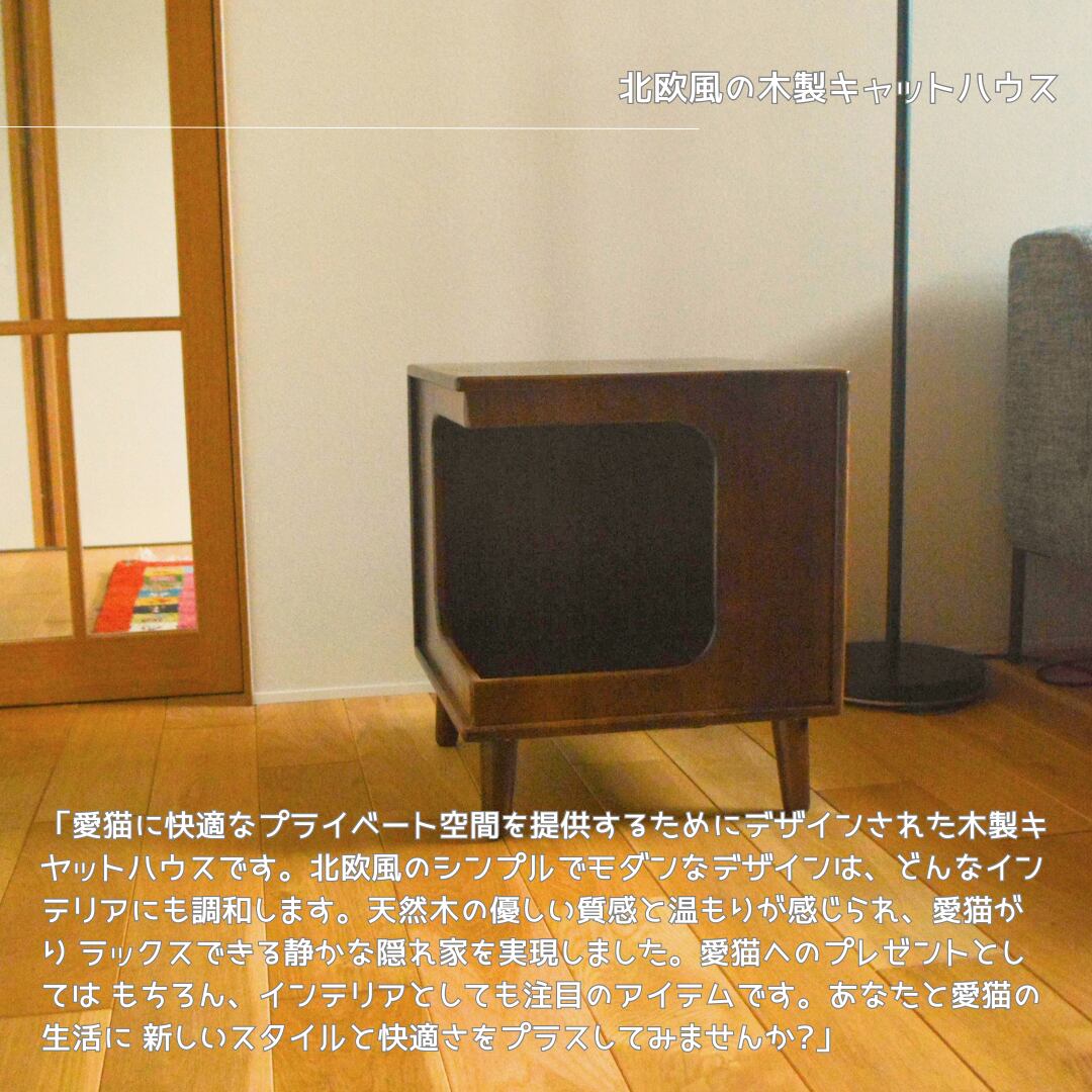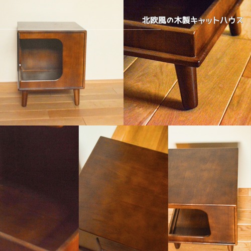 ラバーウッド材を使用したハンドメイドのキャットハウスです。
